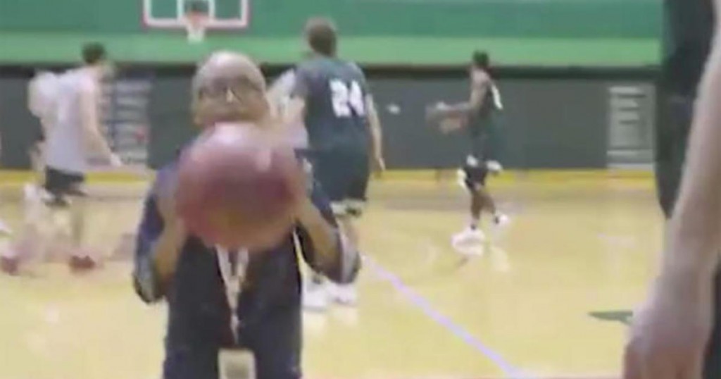 10-year-old boy with cerebral palsy signs with favorite basketball team