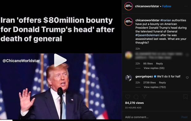 George Lopez under fire for post about rumored bounty on Trump