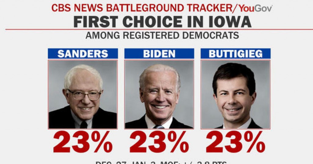 CBS News poll shows Sanders, Biden and Buttigieg tied for lead in Iowa