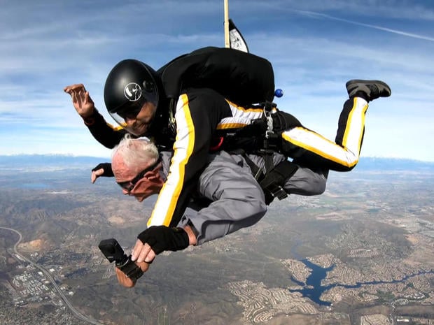 Double-amputee veteran skydives for 90th birthday