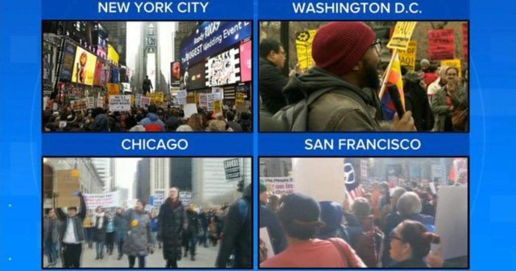 Anti-war protesters take to the streets across the country, fearing another war