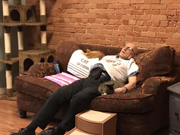 Man who naps with cats raises thousands for a pet sanctuary