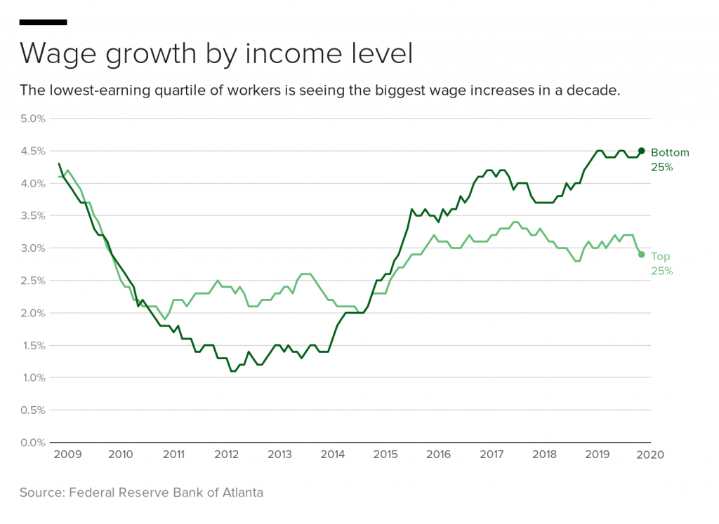 Low-wage workers getting bigger raises than bosses