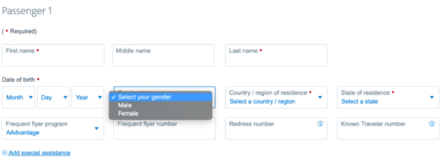 American Airlines adds non-binary gender booking options